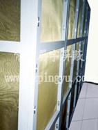 2、屏蔽层制作成单元模块型,每一单元采用优质木料(或镀锌金属型材)作支撑框架。拼装采用M8镀锌螺栓、螺母、垫片组装而成。